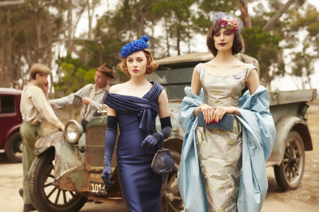 Poi, ultimi ma non da meno, ci sono i vestiti. I costumi sono merito di Marion Boyce, conosciuta per lo straordinario lavoro televisivo sul set della serie Miss Fisher – Delitti e misteri; la Boyce ha concepito oltre 350 costumi per tutto il cast, tranne quelli per la Winslet che sono stati disegnati da Margot Wilson. Le donne di Dungatar sono tutte pallide e monotone fino a quando Tilly non le trasforma in dive da red carpet. Gli abiti sono bellissimi, ispirati in parte al “new look” di Christian Dior e in parte alle linee sinuose e avvolgenti di Vionnet e Balenciaga che usavano tessuti caldi e pregiati per mettere in risalto i pregi e camuffare i piccoli difetti del corpo femminile. Tilly decide sconvolgere la vita della cittadina partendo proprio dai vestiti, ad esempio decidendo di presentarsi a una partita di football indossando un abito rosso a sirena, meraviglioso: i giocatori perdono la testa e lei è in grado di manovrare il risultato a suo piacimento.