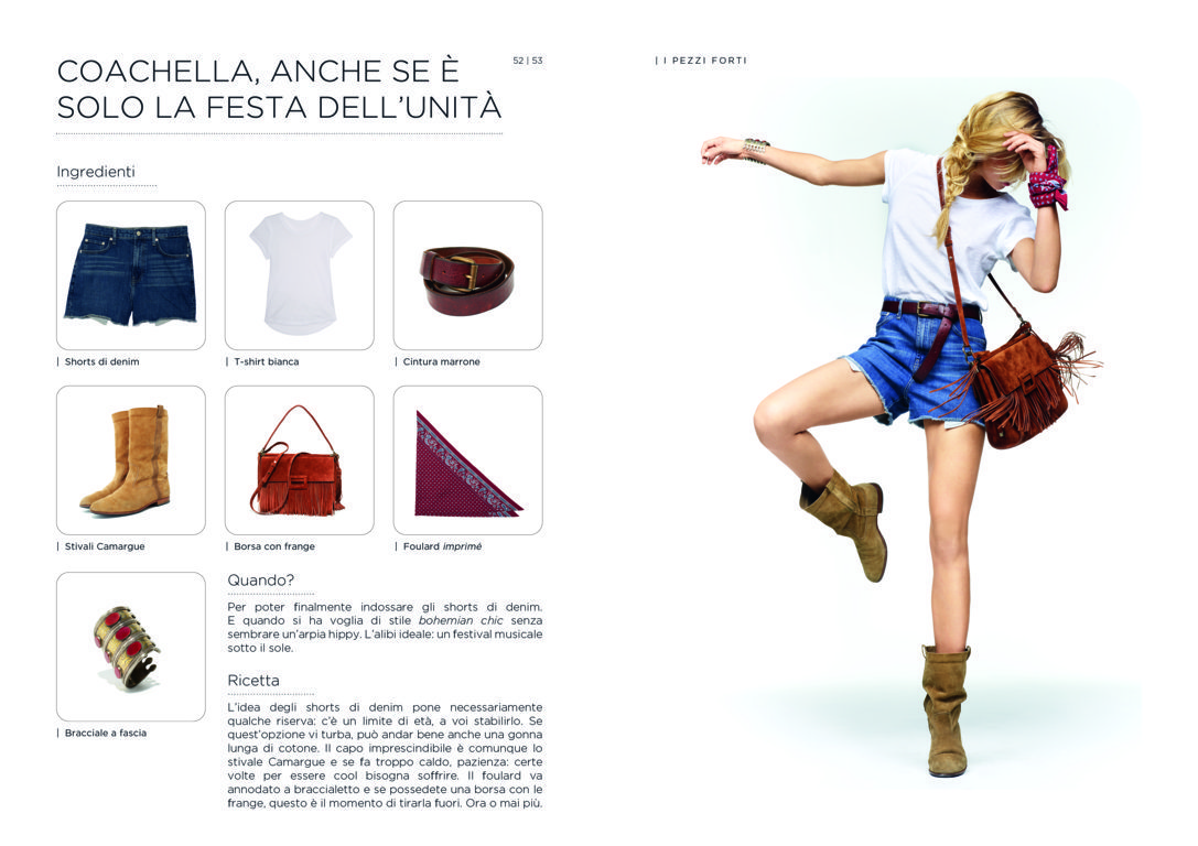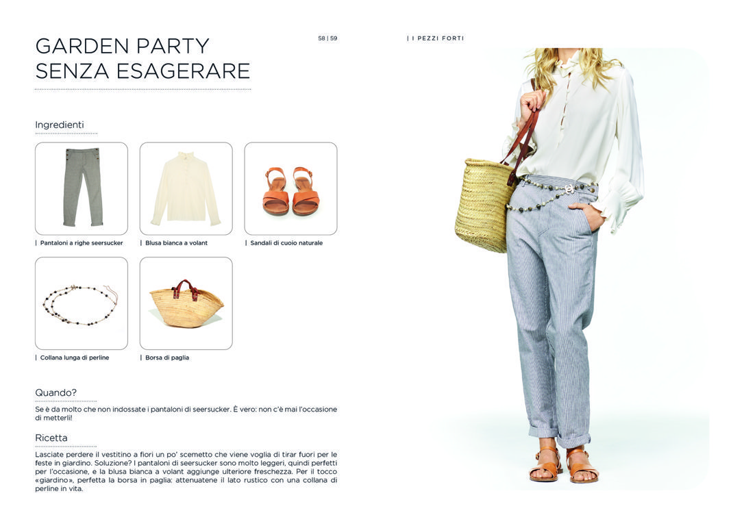 “Come mi vesto oggi” assomiglia un po’ a un libro di ricette con tanto di lista degli ingredienti: 50 look, uno per occasione dal “Ho tre minuti per vestirmi e filare in ufficio” al “Oggi è una giornata complicata, passando con ironia da situazioni come “Incontro i futuri suoceri. Punto sul look ragazza allegra ma non troppo”. Per un assaggio di come puoi gestire il tuo aspetto in qualsiasi situazione pensabile – e impensabile – puoi consultare la GALLERY.