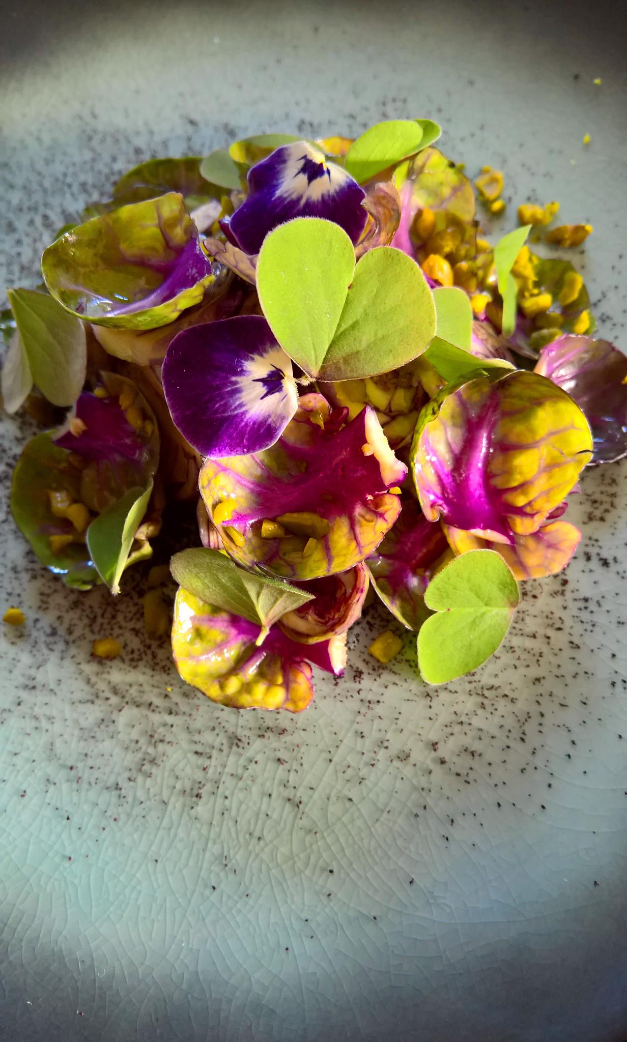 Daniela aveva creato un piatto con tempeh di ceci, purè di pastinaca, perle d’aglio fermentato, sfoglie di cavolo rosso e chia, gel di cavolo rosso. Aveva parla di proprietà nutrizionali, di omega-3 e omega-6, d’aglio fermentato, di tecniche e di temperature, aprendo nuove strade per considerare il cibo ovviamente come qualcosa di necessario, che deve farci bene ma che deve essere appetibile. Il suo lavoro è giustamente conosciuto per la sua capacità di incantare lo sguardo – con composizioni piene di fiori colori e delicatezza – ancora prima di conquistare il palato di chi assaggia i suoi piatti.
