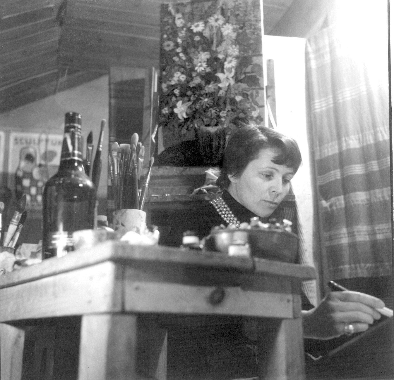 Nata nel 1912, Ada Minola fu una vivace protagonista della borghesia torinese. Nel secondo dopoguerra, visse un periodo felice d’incontri che segnarono profondamente la sua ricerca artistica. Amica del geniale architetto Carlo Mollino – che disegnò espressamente per la sua casa dei pezzi unici d’arredamento che appartengono alla storia del design italiano – frequentò gli artisti Lucio Fontana, Giò Pomodoro, Umberto Mastroianni e altri artisti che orbitarono nel panorama cittadino del periodo. Alla fine degli anni ’50, infatti, instaurò una fruttuosa collaborazione e una solida amicizia con l’affermato critico d’arte francese Michel Tapié, che la chiamò a dirigere l’International Center of Aesthetic Research da lui fondato a Torino nel 1960.