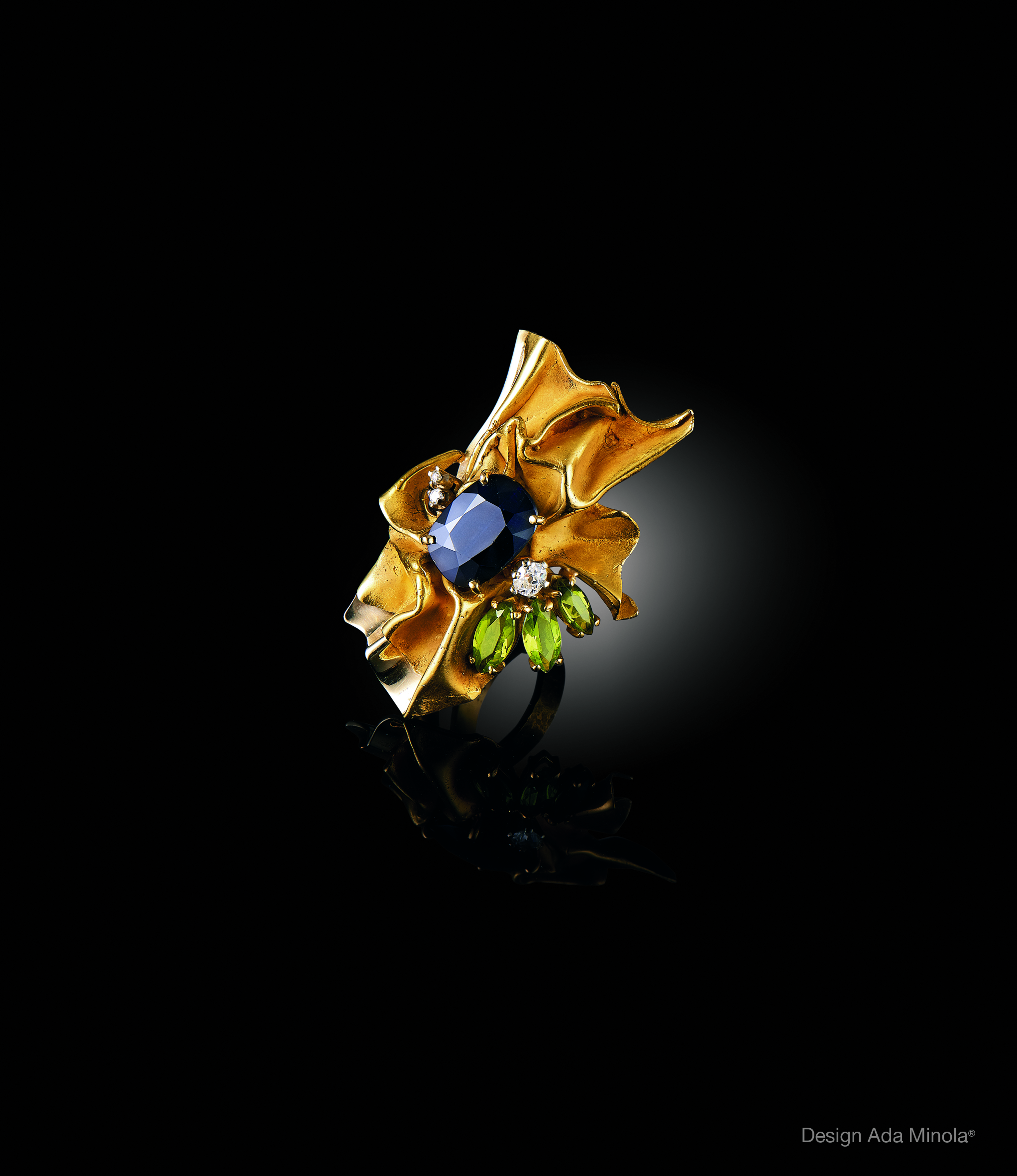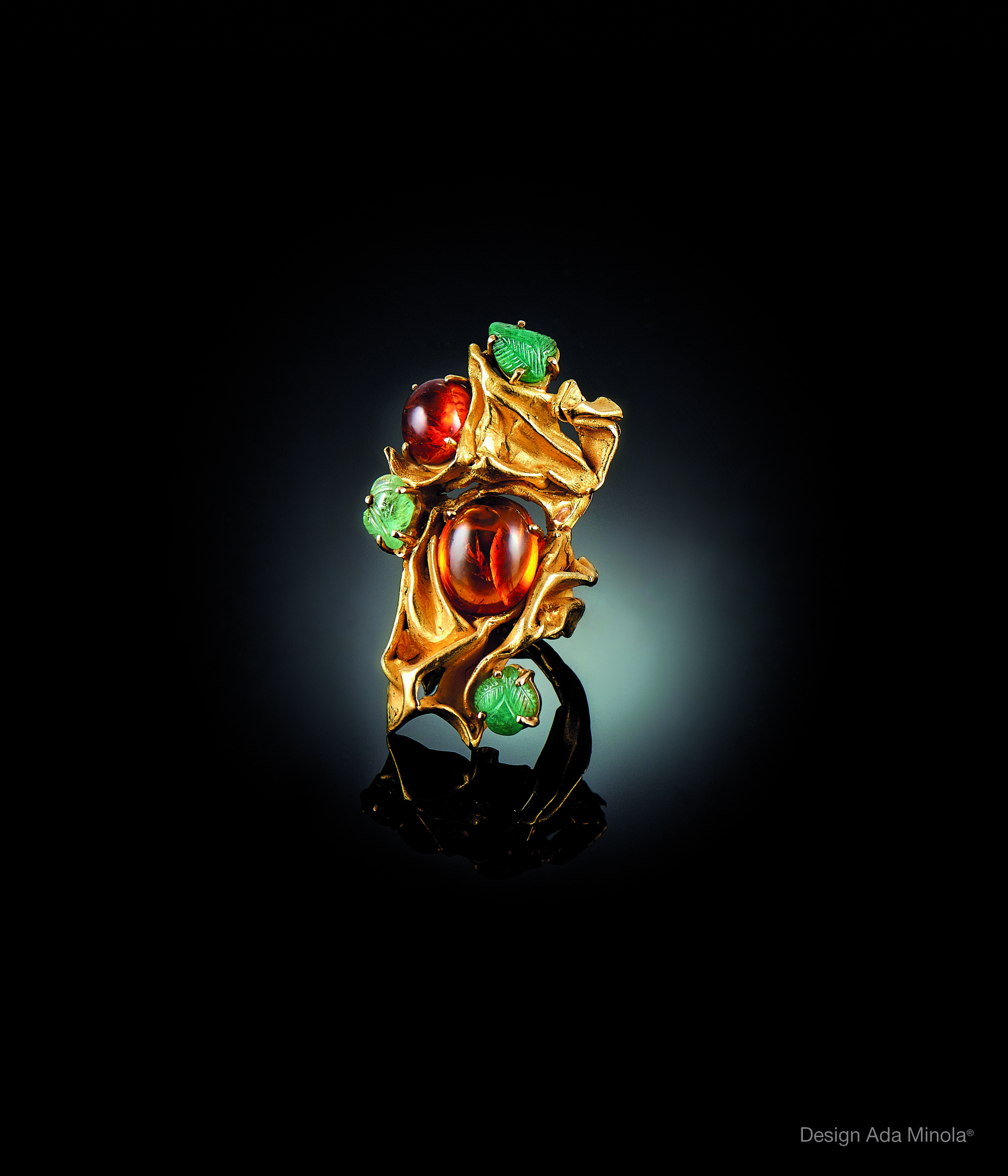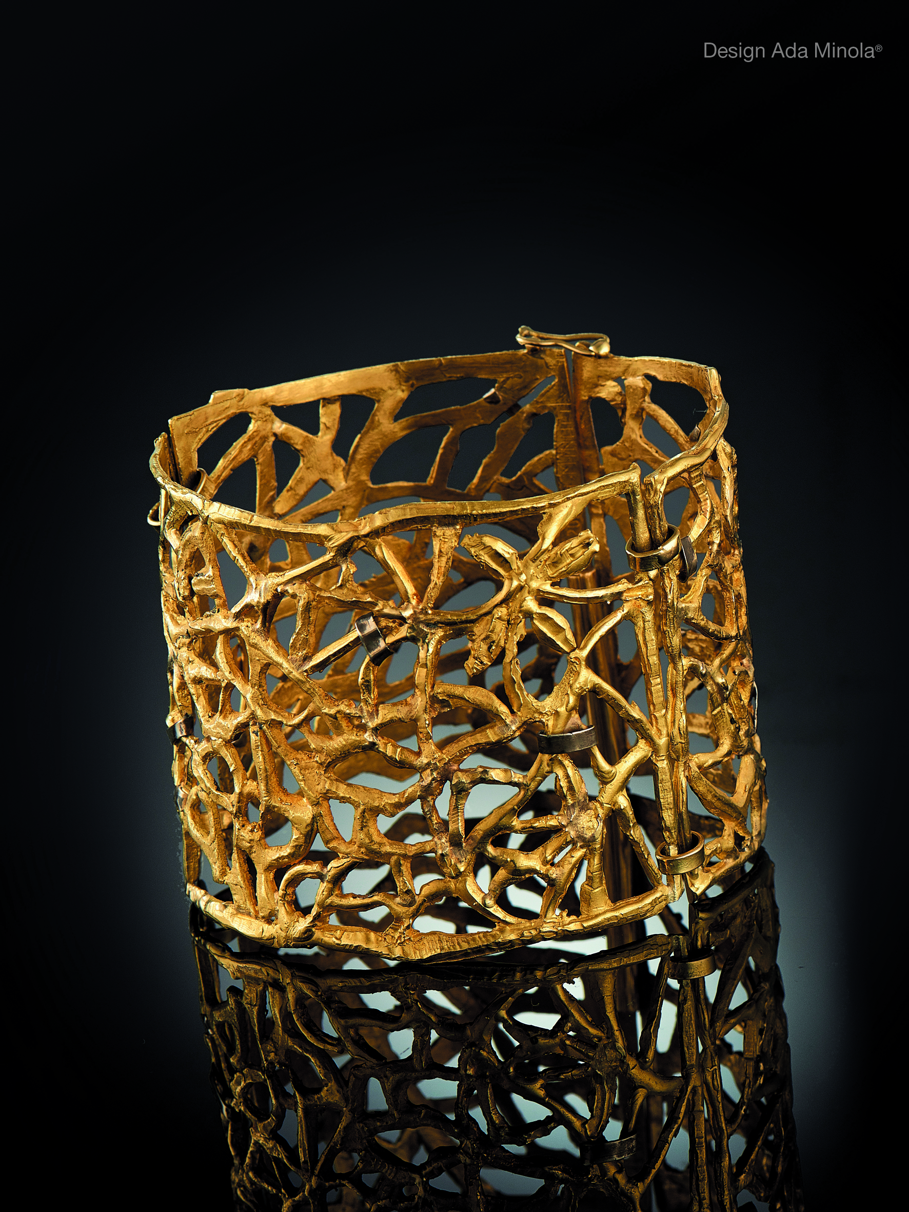 Figlia e nipote di orafi lombardi, dall’inizio degli anni ’50 Ada Minola realizzò i primi manufatti in oro, argento e pietre preziose con la tecnica della fusione a cera persa. Piccoli capolavori caratterizzati da volumetrie fiammeggianti e da un ardito trattamento della materia. I suoi gioielli riscossero subito una buona fortuna critica, tanto che alcuni suoi esemplari – su invito di Arnaldo e Giò Pomodoro – furono esposti alla Triennale del 1957.