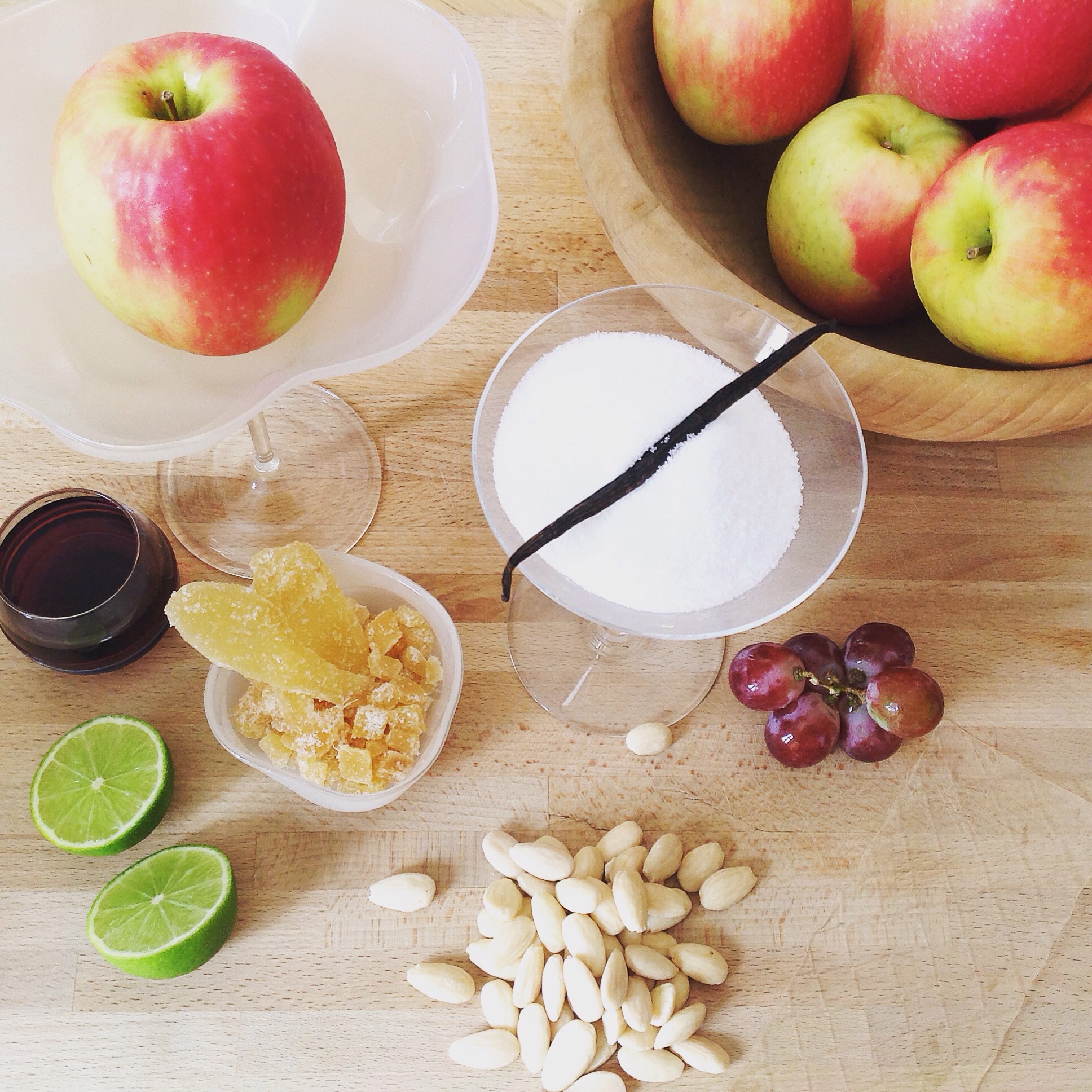 Per la passata di mela: 2 mele Pink Lady®, 20 g di zucchero, un baccello di vaniglia