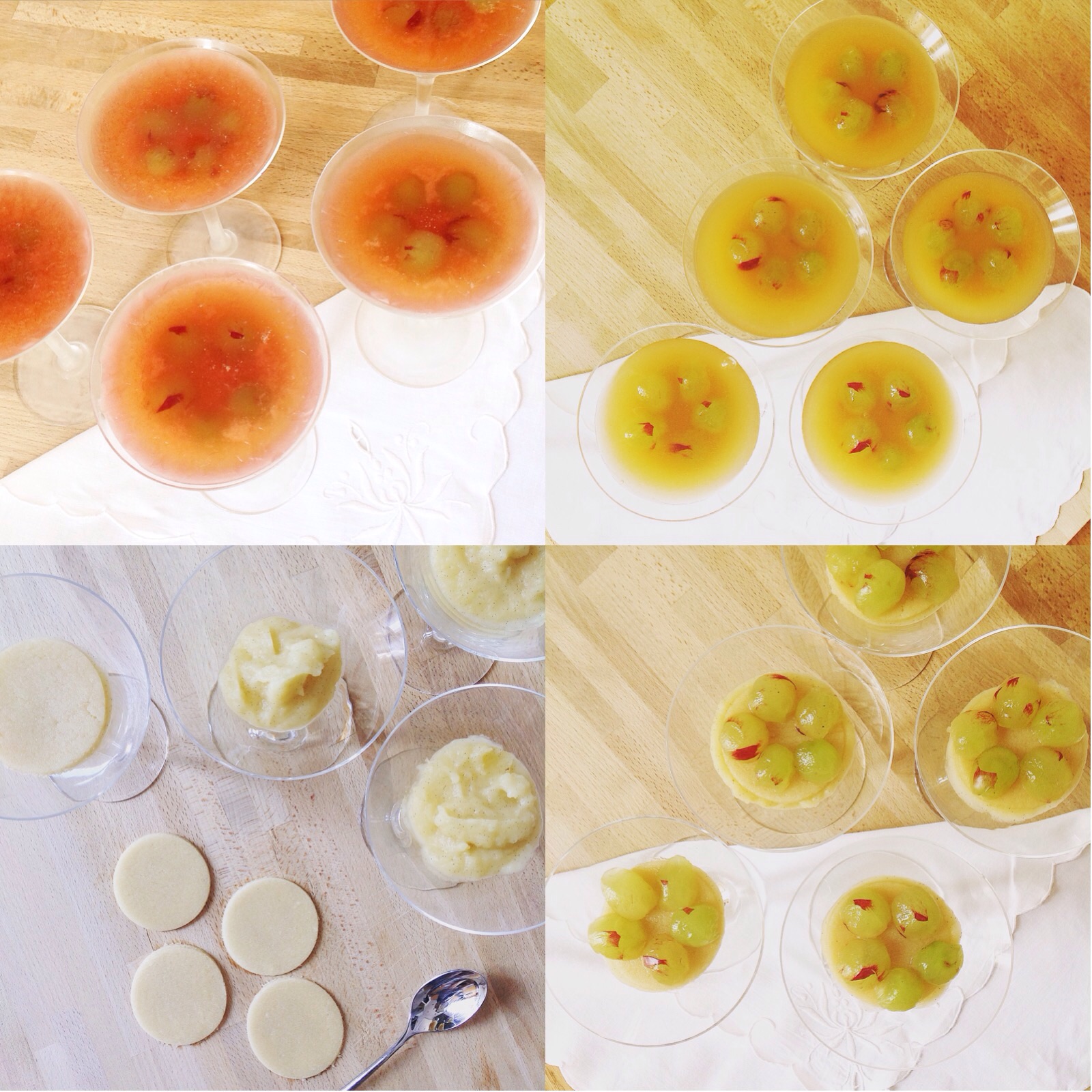 Versate la gelatina di mela sopra l’uva, lasciando spazio sufficiente fino all’orlo della coppa per l’ultimo strato di copertura. Mettete le coppette in frigorifero e, quando la gelatina è solida, versate l’ultimo strato. Lasciatele al fresco fino a una mezzora prima di servirle.