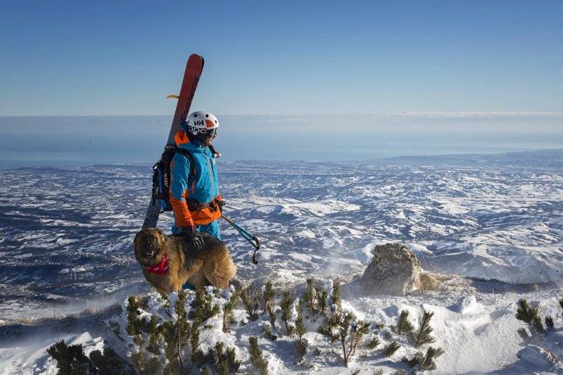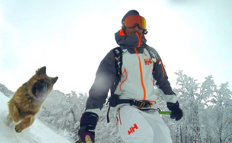 Nonostante abbia sciato in posti meravigliosi nel mondo, il suo “parco giochi” preferito sono le montagne vicino a casa, gli Appennini Centrali, in cui trascorre fantastiche giornate di neve fresca con il suo cane Argo.