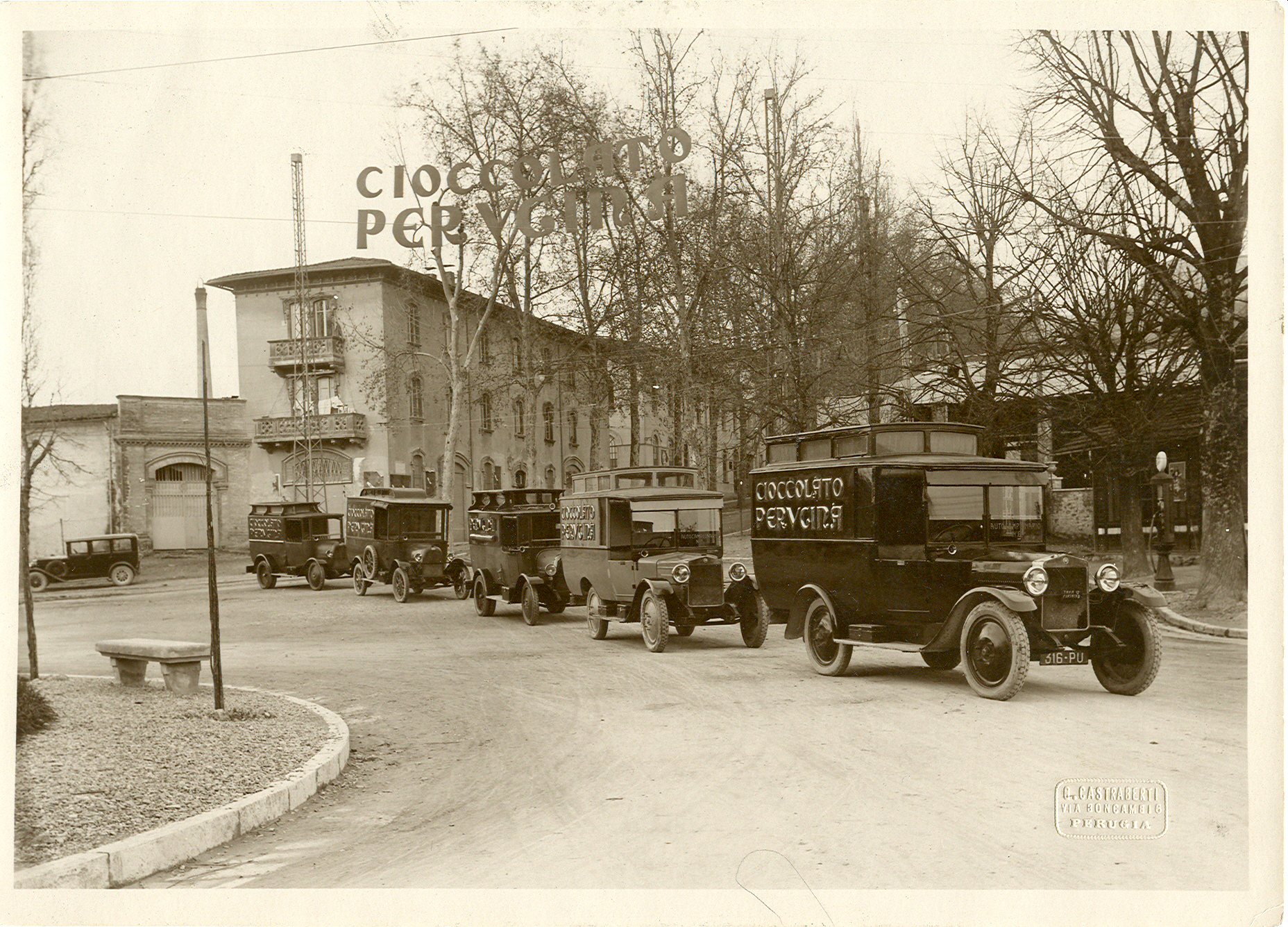 - I camioncini escono dallo stabilimento di Fontivegge 1930