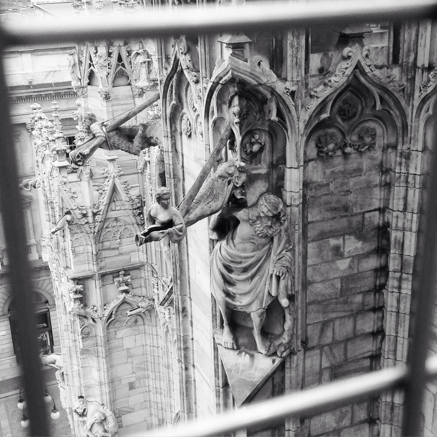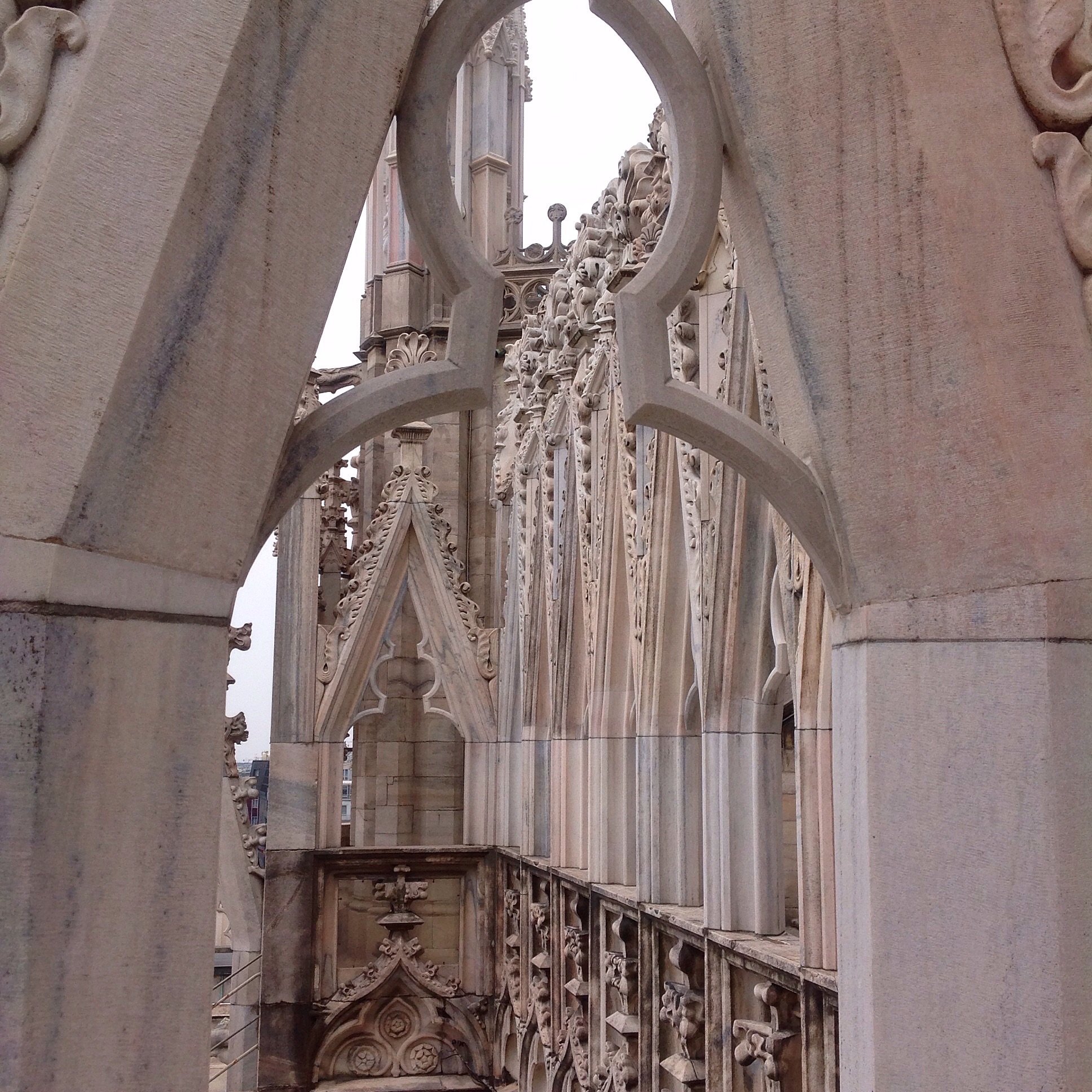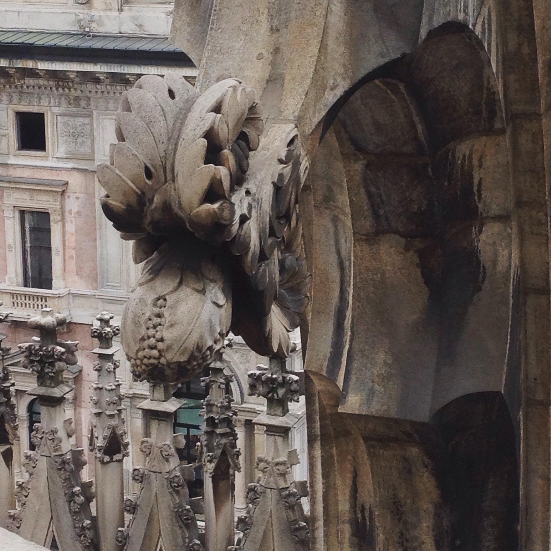 Il Duomo fa barcollare ogni certezza, prima tra tutti quella che riguarda il concetto di originale e la sua conservazione: virtualmente, non esiste pezzo che non sia stato o non possa essere sostituito, anziché restaurato. Ogni elemento architettonico, quando necessario, è ricostruito con il marmo proveniente dalla stessa cava di Candoglia utilizzata cinquecento anni fa. Che fine fanno gli originali? I più preziosi sono stati raccolti nel museo adiacente, altri hanno un proprio cimitero (sfortunatamente non accessibile) vicino a Musocco. Non ricordo altre opere d’arte in cui sia legittimata questa pratica, con una copia che, di fatto, non è considerata tale.