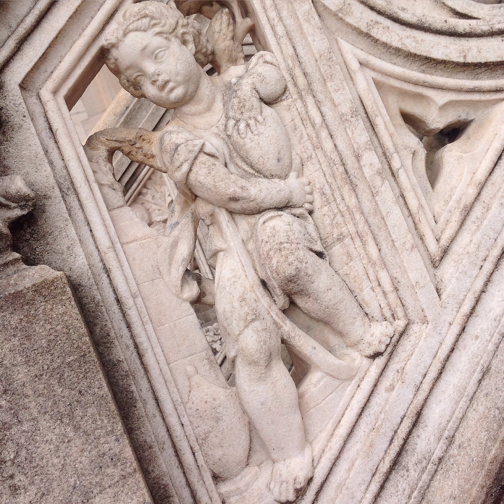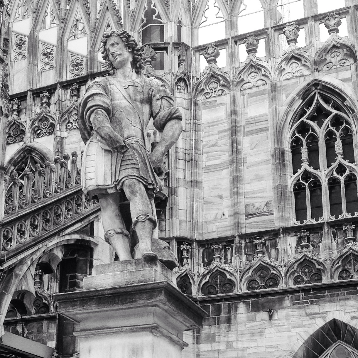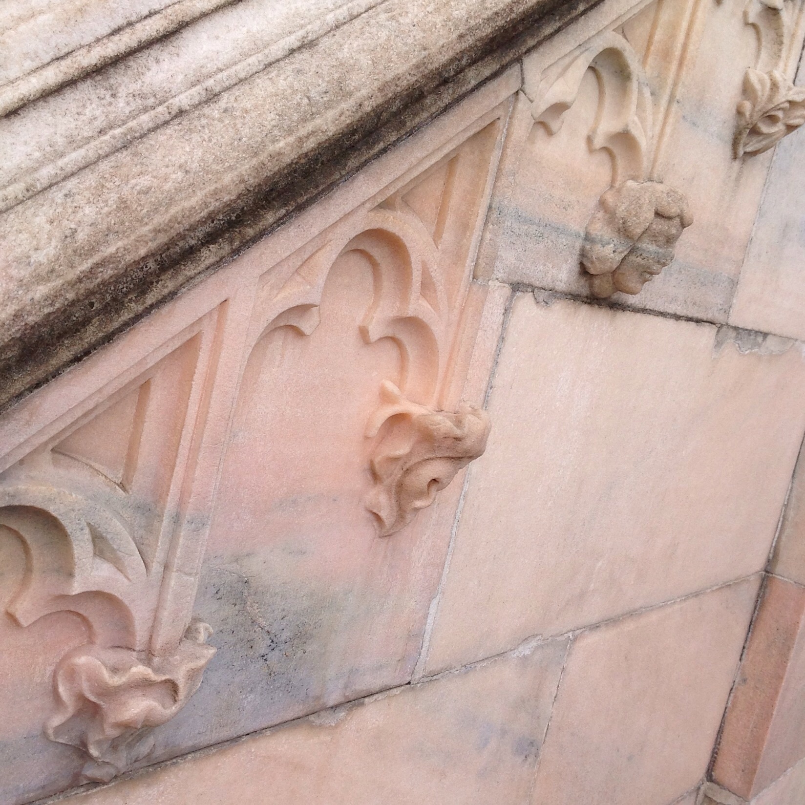 Il Duomo fa barcollare ogni certezza, prima tra tutti quella che riguarda il concetto di originale e la sua conservazione: virtualmente, non esiste pezzo che non sia stato o non possa essere sostituito, anziché restaurato. Ogni elemento architettonico, quando necessario, è ricostruito con il marmo proveniente dalla stessa cava di Candoglia utilizzata cinquecento anni fa. Che fine fanno gli originali? I più preziosi sono stati raccolti nel museo adiacente, altri hanno un proprio cimitero (sfortunatamente non accessibile) vicino a Musocco. Non ricordo altre opere d’arte in cui sia legittimata questa pratica, con una copia che, di fatto, non è considerata tale.