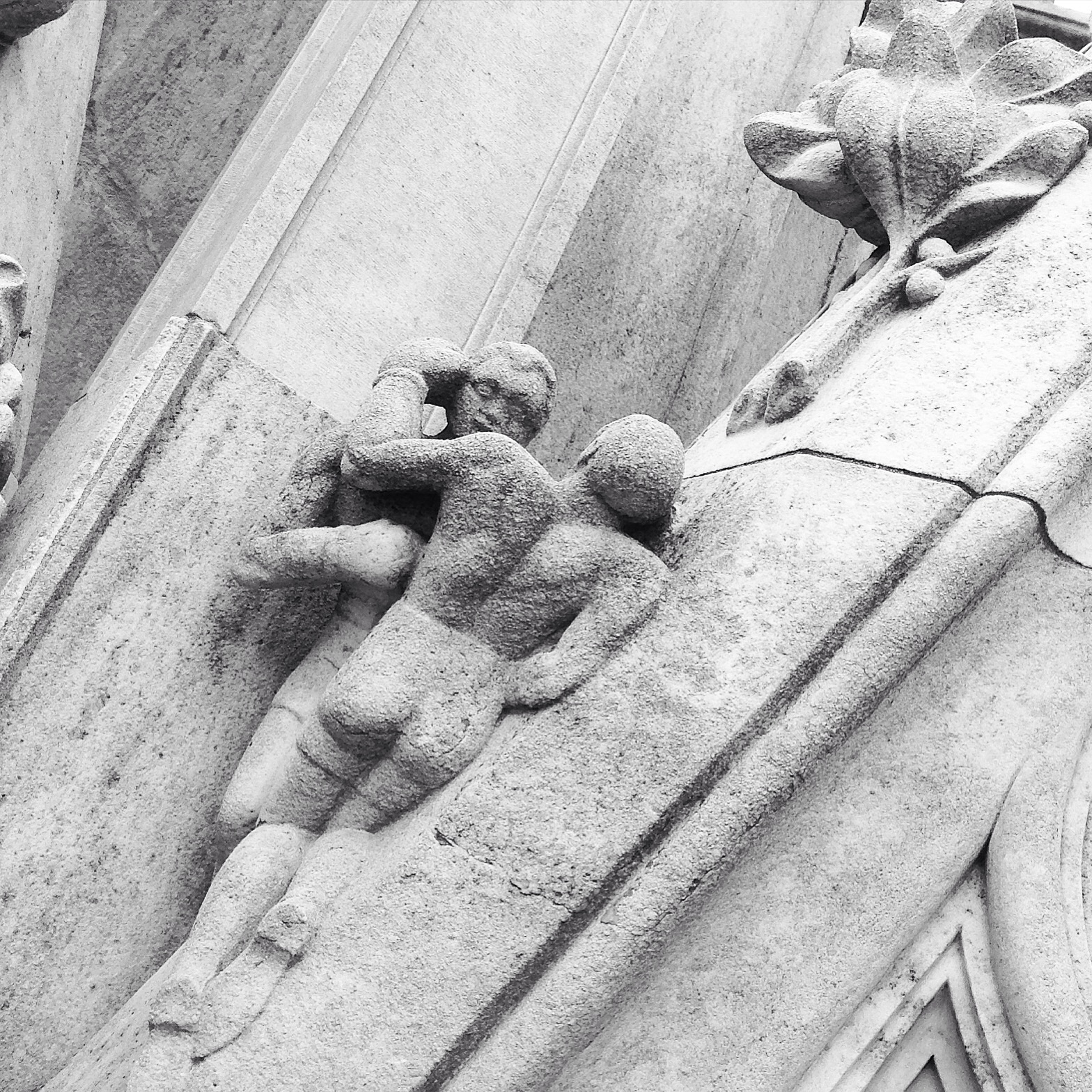 Tra le guglie – fortunatamente diventate oggetto di mecenatismo privato grazie al progetto adotta una guglia – soffermatevi a osservare ogni particolare. Io ho avuto una guida d’eccezione che mi ha raccontato aneddoti sulla grande libertà espressiva lasciata nei secoli agli artisti. Ad esempio, negli anni ’20, gli scalpellini di Viggiù (molti dei quali furono anarchici e costretti a fuggire in Argentina con l’avvento del fascismo) avevano potuto incidere nei bassorilievi anche i simboli degli sport più in voga – ci sono racchette da tennis, palloni da basket e attrezzature da scalatori – o le gesta di Primo Carnera.