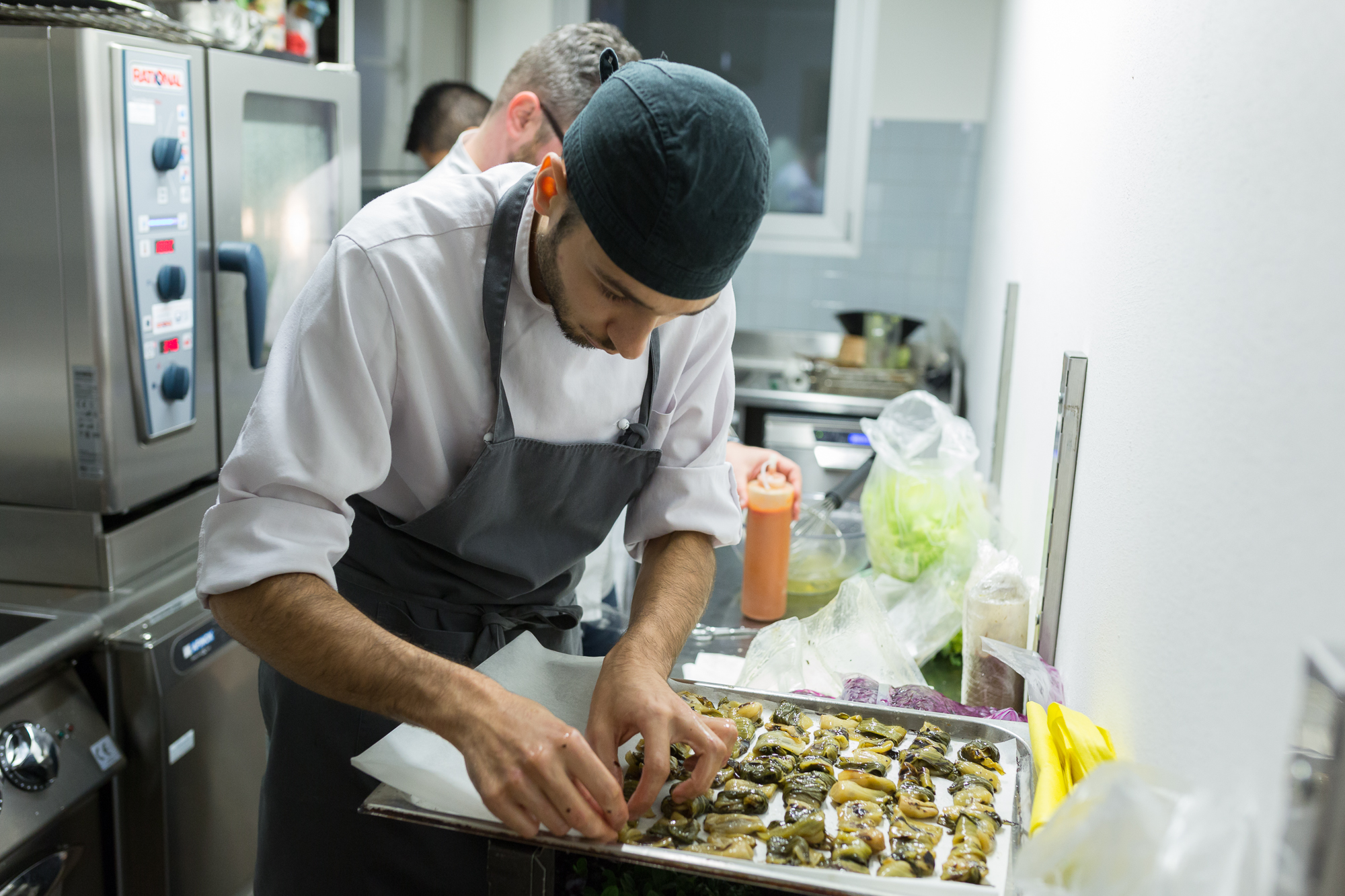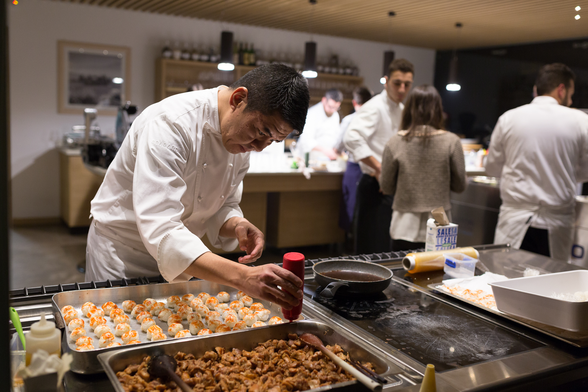 - Niimori Nobuya del ristorante Sushi B di Milano prepara il topping della sua pizza a quattro mani con Denis Lovatel ©Aromi Creativi _Ferrowine