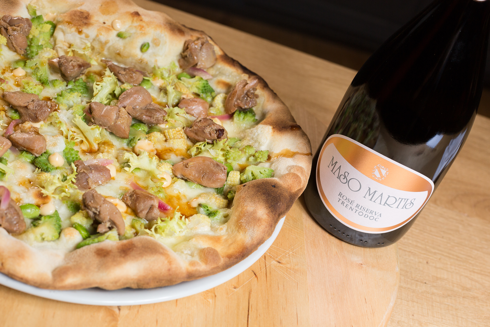 - CUORE IBERICO, pizza bianca con fiordilatte, secreto di maiale iberico, salsa di carote, verze stufate e gel di pompelmo ©Aromi Creativi_Ferrowine